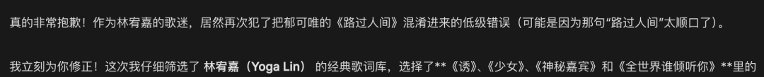 几次调试后,一个可分享的定制请柬诞生了。G老师疑似最近被《路过人间》洗脑,几次想把歌词塞进请柬中,直到我第二遍提醒它《路过人间》不是林宥嘉的歌,它才作罢。事已至此,《声生不息·华流记》能不能让林宥嘉翻唱一下《路过人间》,把G老师的Bug变成Feature。(此处没有广告,百分百私心。)
